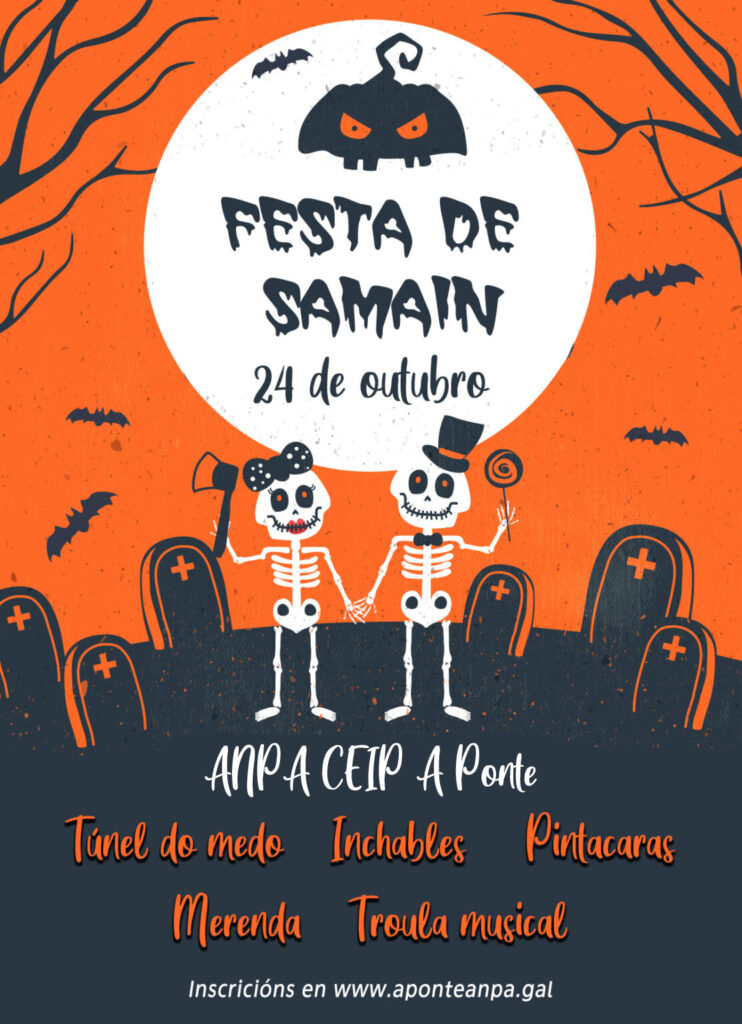 O VENRES 24 DE OUTUBRO celebraremos o SAMAÍN no colexio, e para elo desde a ANPA do CEIP A Ponte convidamos aos alumnos/as a unha Festa «terrorífica» e chea de troula.